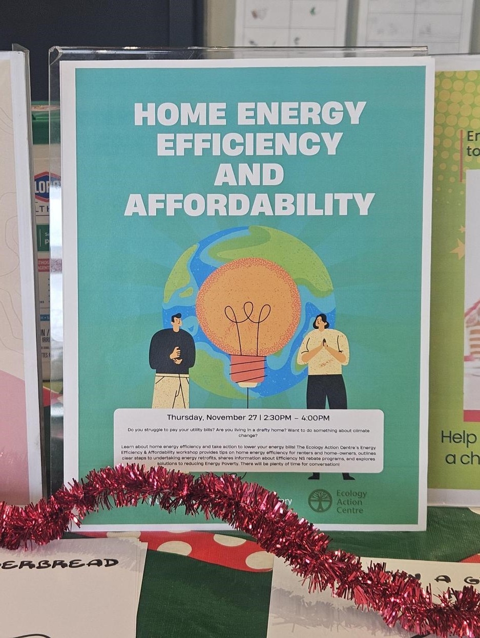 These are the questions Juli Bishwokarma and I asked during our November rural libraries workshop tour. We met with people in the community to talk about tips on home energy efficiency for renters and home owners, review the most effective order in which to undertake energy efficiency retrofits, and share information about Efficiency Nova Scotia’s excellent rebate programs. We also presentede information about ways we can all take action to support EAC’s proposed solutions to reducing our energy bills and lifting people up out of Energy Poverty.